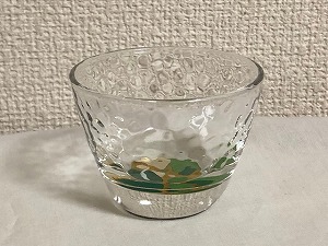 『ぐい呑みグラス』金地に緑と白のまる [戻る]
