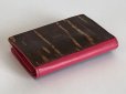 樹皮の名刺入れを開けると、内側は濃いピンク色の牛皮。両側にポケット。