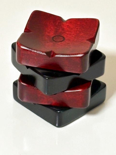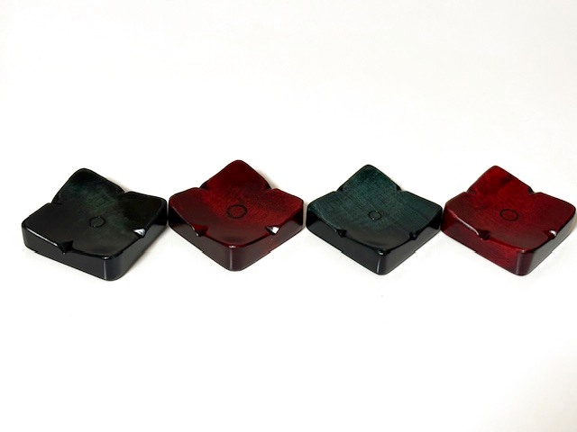 緑色の拭き漆と紅色の拭き漆がの箸置きが2個ずつ計4個でセットにしています。